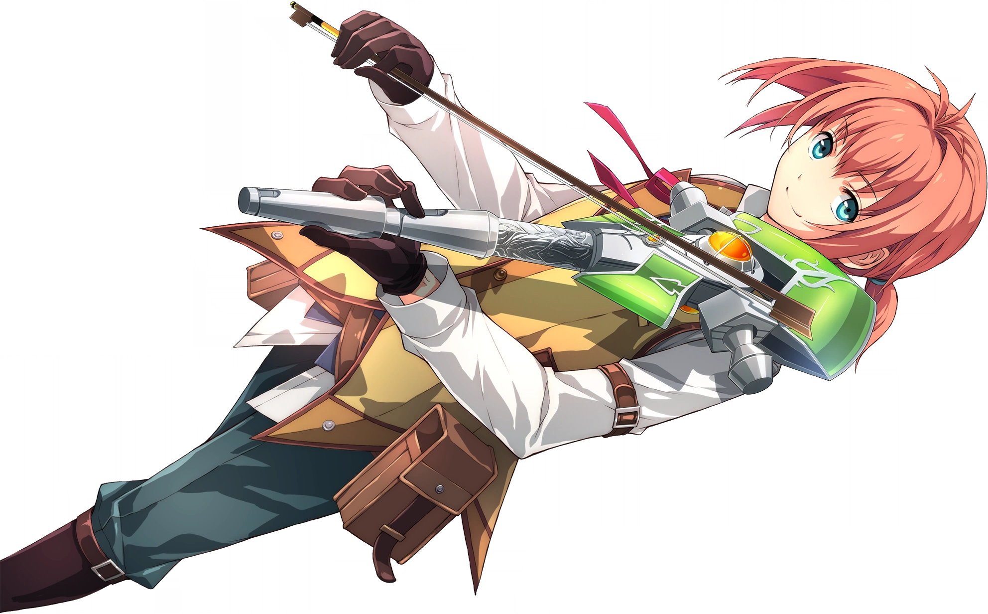 Swinging down from the mast, she deftly lands on the deck with a grin as she tosses back some of her hair while rising to her full height. ]